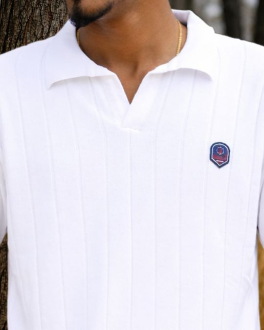 Men’s Solid Ribbed Polo Knit White T-Shirt
